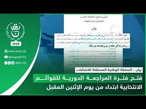 النشرة الرئيسية 20h00 Most Recent 30/10/2025 18:46 - Beyond the Veto: Mounting Pressure for a More Representative UN Security Council 18:42 - How Algeria Helped Shape the World’s First UN Cybercrime Treaty نشرة الأخبار الرئيسة | 28-10-2025 صباح الإخبارية - 2025/10/26 من المحكمة الدستورية | 25-10-2025 خير من العلاج .. | 25-10-2025 في التأني السلامة | 25-10-2025 الظهيرة | 25-10-2025 في دائرة الأحداث | 24-10-2025 صباح الإخبارية | 25-10-2025 أبعاد | الهوية.. الرسوخ والانسلاخ في الواجهة | 23-10-2025 الظهيرة | 23-10-2025 صباح الإخبارية | 23-10-2025 Previous Next النشرة المحلية - 2025/10/14 موجز الأخبار - الثالثة 2025/10/14 غليزان - ري | محطات تصفية المياه المستعملة البديل الصحي العاصمة - تضامن | تدشين مراكز نفسية بيداغوجية للأطفال من ذوي الهمم وزارة الصحة | حملة تحسيسية حول سرطان الثدي صحة - ضمان اجتماعي - توقيع اتفاقية | التكفل بعلاج وزراعة الكبد فتح فترة المراجعة الدورية للقوائم الانتخابية ابتداء من يوم الإثنين المقبل وهران - المنتخب الوطني | الباهية تعيش أجواء مباراة الجزائر أوغندا تيزي وزو – كرة القدم | المنتخب الوطني يجري آخر حصة تدريبية قبيل مواجهة أوغندا تيزي وزو | أجواء حماسية يصنعها أنصار المنتخب الوطني تيزي وزو | أجواء حماسية يصنعها أنصار المنتخب الوطني تيزي وزو - المنتخب الوطني | بداية توافد الجماهير لملعب حسين آيت أحمد نشرة الأخبار - الواحدة 2025/10/14 نشرة أخبار- الحادية عشر | 14-10-2025 موجز أخبار - العاشرة | 14-10-2025 موجز أخبار - التاسعة | 14-10-2025 عرض المزيد